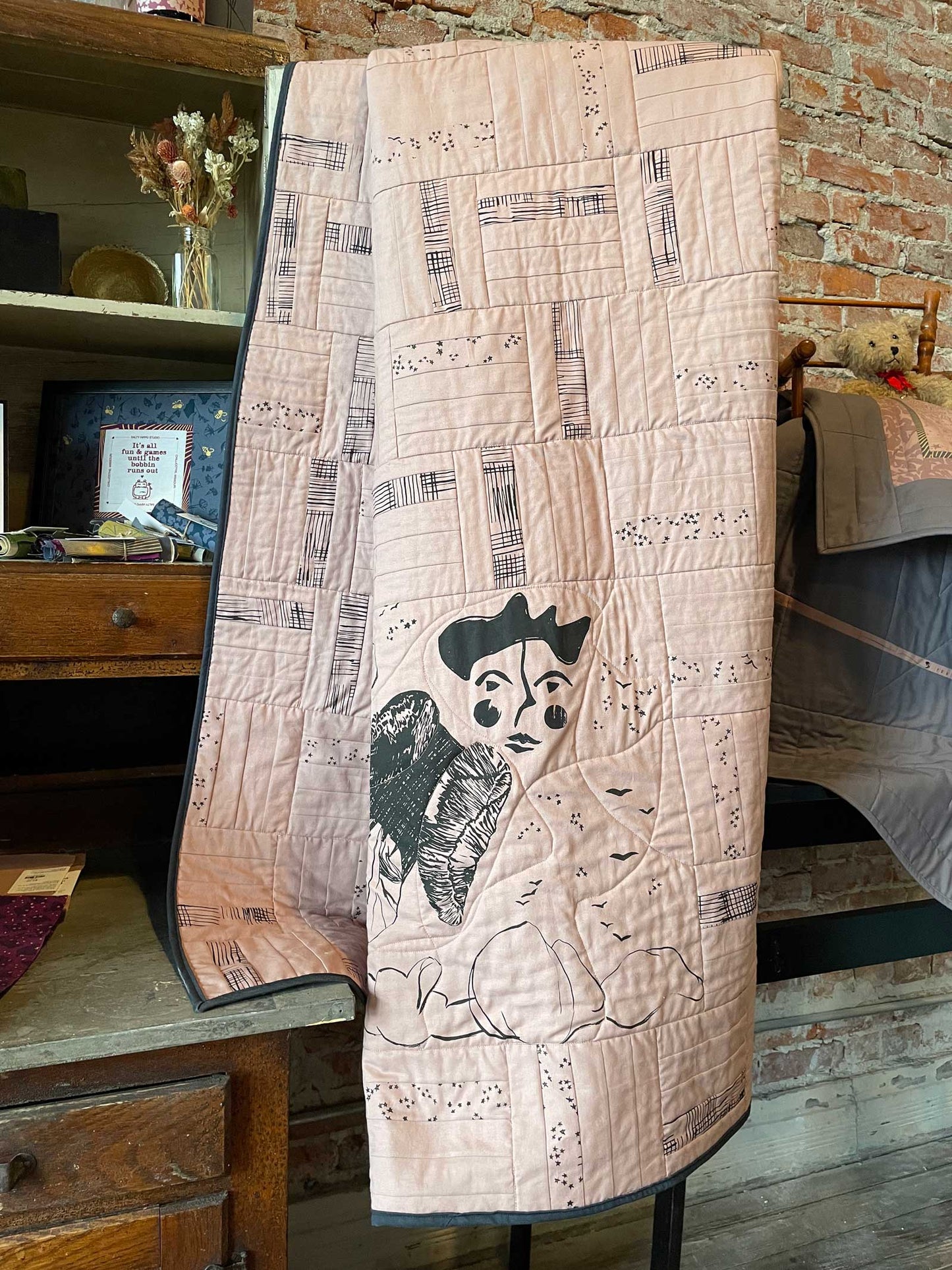 Printed in small batches, she’s part guardian, part daydream—surrounded by birds and stardust, always in motion. Whether you see her as a muse, a mood, or a symbol of freedom, this hand-pulled panel brings personality and a bit of mischief to quilts, textile art, and stitched stories. She doesn’t follow the pattern—she flies right through it.