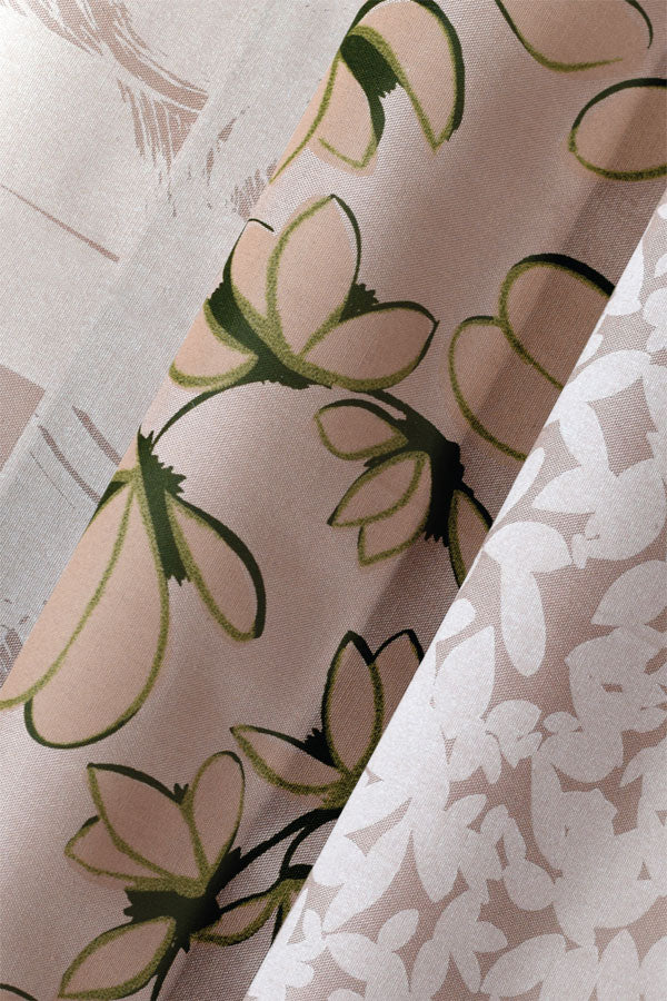 A warm mix of suede tones and pale texture—this trio feels soft to the touch and quietly expressive. Josephine’s floating florals bring the rhythm, while the Leaf and Broken Brushstroke prints add the grounding texture every project needs. Together they’re subtle, modern, and ready to layer into something unmistakably your own.