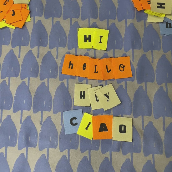 Each hand-printed fabric panel features letters, phrases, or playful illustrations—designed to be cut, pieced, and sewn right into your project. Spell out your own message with an alphabet panel, or choose a ready-made statement for someone about to receive the best gift ever.